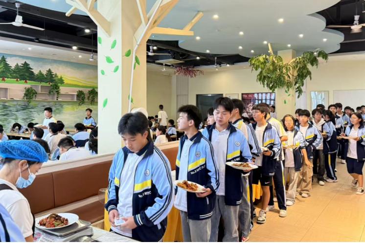 “现在食堂中晚餐有12个常规菜,三楼自助餐还有28种不同选择,免费提供营养汤,每天都能换花样。”九中食堂店长彭毅介绍道。为贴合学生口味与营养需求,食堂建立了动态调整机制。通过日常反馈与定期调研,收集学生对菜品咸淡、油度的建议,灵活优化食谱。从香辣可口的小炒到风味不一的粉面档口,从平价主食到特色风味,多样化的选择兼顾了学生不同的饮食偏好,也让“光盘行动”在这里成为常态。